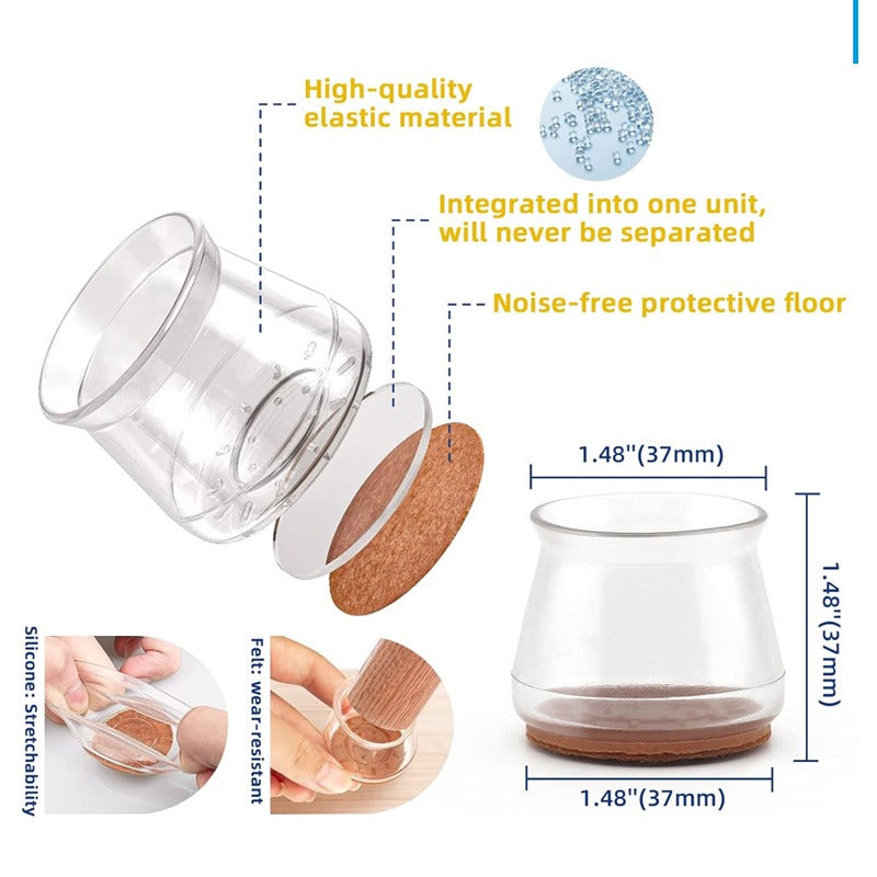 Protect your floors and enjoy quieter movement with these 4 Pcs Silicone Chair Leg Protectors with Felt Pads. Designed to fit snugly over most chair legs, these flexible and durable covers prevent scratches, reduce noise, and improve furniture stability without the need for tools or adhesives.
