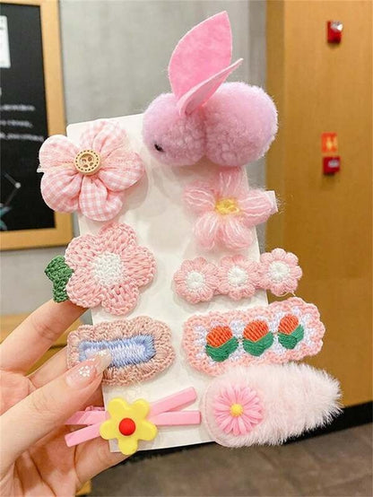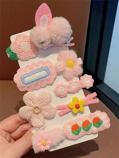 "Artisan Elegance: 9-Piece Beautiful Design Wool Knitted Hair Clips Set"